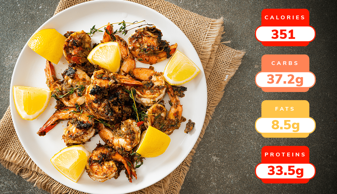 Serving Size: 5 ounces shrimp and 1 cup pineapple mixture
